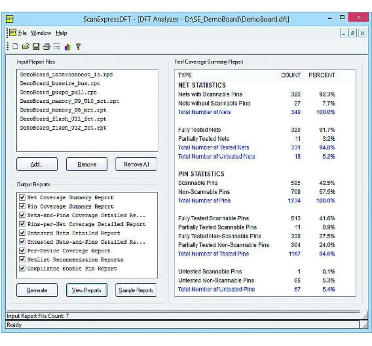 All diese Voraussetzungen überprüfen die »ScanExpress«-Werkzeuge schon während der Baugruppenentwicklung noch vor dem Layouten. Zudem bieten die Tools eine Design-for-Testability-Analyse (Bild 7), mit der sich die Testtiefe analysieren lässt, sodass der Entwickler gegebenenfalls noch rechtzeitig die Möglichkeit hat, diese durch Designoptimierungen weiter zu verbessern.
