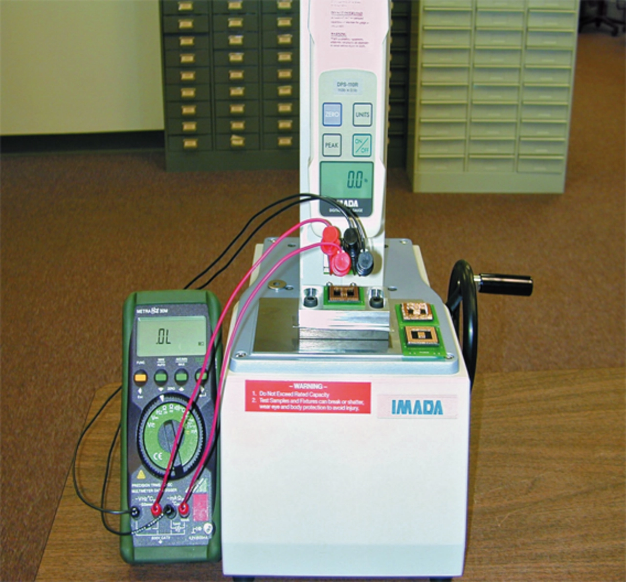 Die Buchsenstifte mit integriertem Federkontakt im unteren Modul bestehen aus einem einzigen Stück wärmebehandelter Beryllium-Kupfer-Legierung 172 mit 30 Mikrozoll Gold- und 100 Mikrozoll Nickeloberfläche. Sie sind direkt in den Polyimidträger eingepresst. Demgegenüber sind die Rundstifte im oberen Modul aus der Messing-legierung 360 gefräst und ebenfalls mit 30 Mikrozoll Gold und 100 Mikrozoll Nickel überzogen. Auch die Rundstifte sind direkt in das FR4-Substrat eingepresst. Bild 1 zeigt einen Querschnitt durch das Design.