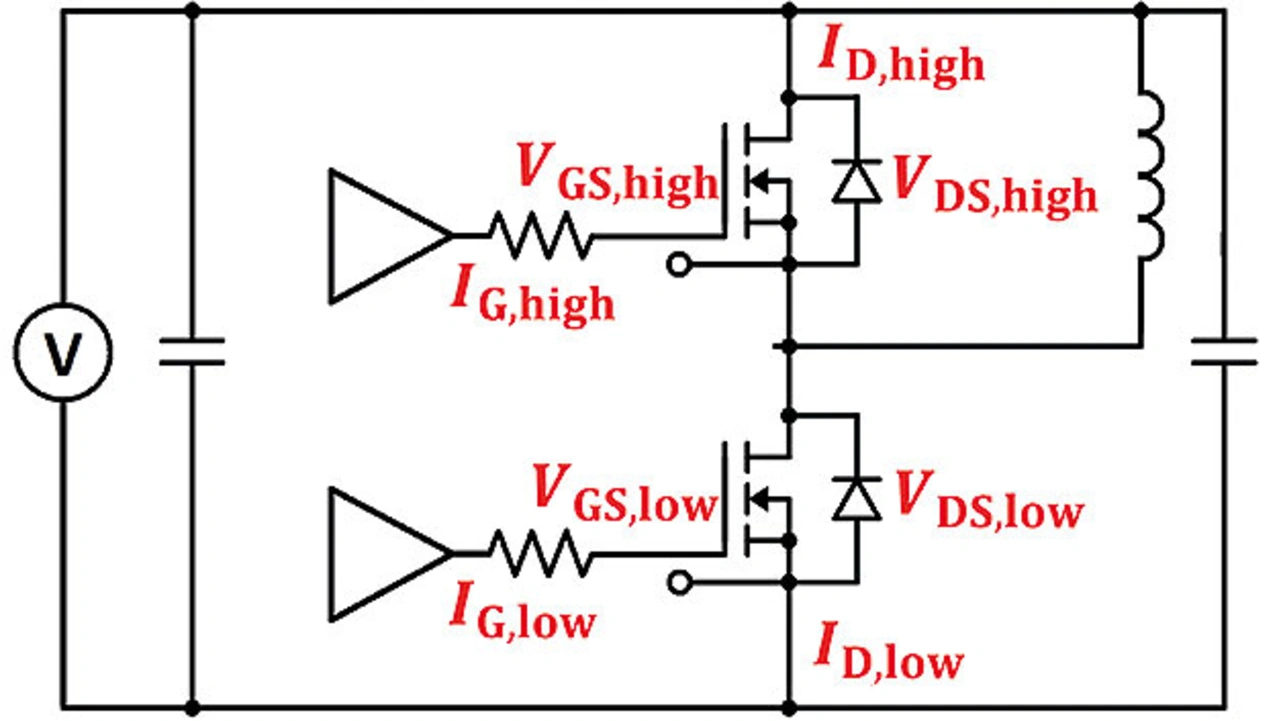 Im Gegensatz zu diskreten Bauelementen enthalten Leistungsmodule in der Regel mindestens eine Halbbrücke. Sie ist nicht symmetrisch aufgebaut, was zu einem unterschiedlichen dynamischen Verhalten der Low-Side und der High-Side führt. Dies macht es erforderlich, VDS, VGS (und ID, IG) dynamisch für Low- und High-Side zu messen.