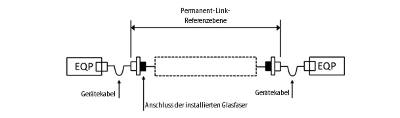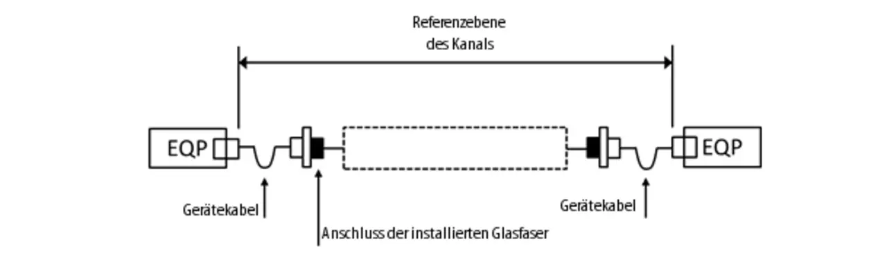Die Referenzebene des Kanals berücksichtigt die Dämpfung der installierten Glasfaser, Anschlüsse, Spleiße sowie die Dämpfung zwischen den Gerätekabeln und der installierten Verkabelung, die in den meisten Fällen das Permanent-Link bildet.