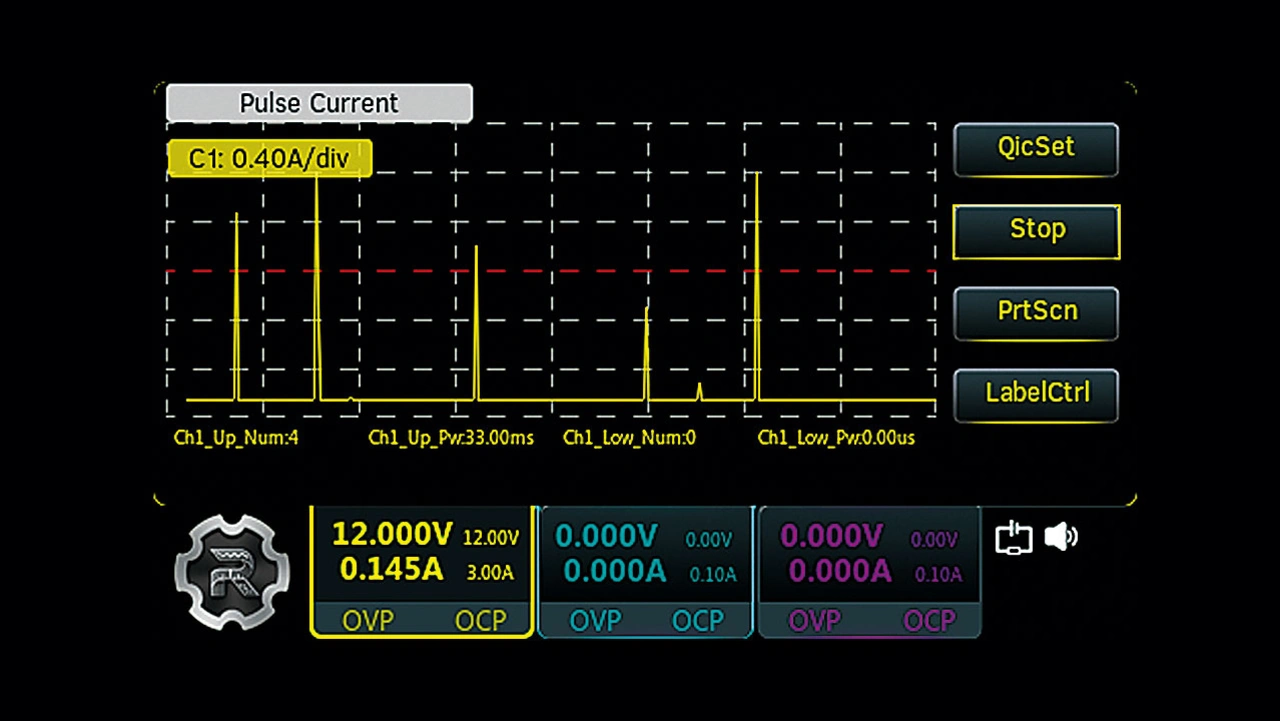 Das neue Netzteil bietet eine Vielzahl an Analyseformen, wie beispielsweise die Möglichkeit der Vermessung von Strompulsen. Mit der Strompulsanalyse ist es möglich, die Anzahl der Strompulse sowie die Pulsweite festzustellen. Dabei werden nur die Strompulse gezählt, die einen eingestellten Schwellwert überschreiten (Bild 3). Das lässt sich sowohl mit positiven Strommaxima als auch mit unerwünschten Stromeinbrüchen durchführen.