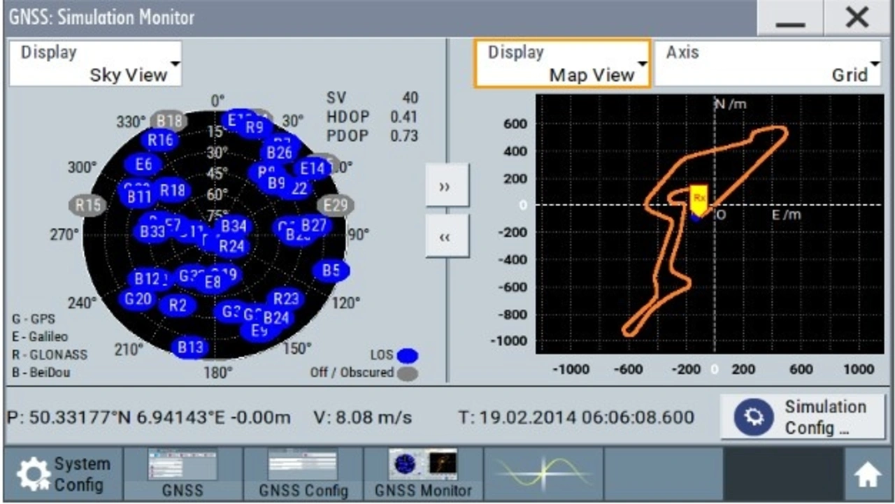 Der Simulator generiert Signale für sämtliche globalen Navigationssatellitensysteme wie GPS, Galileo, GLONASS und BeiDou sowie für viele satellitengestützte Ergänzungssysteme (SBAS). So ist es ganz einfach, realistische Konstellationen zu erzeugen, bei denen Satelliten von mehreren unterschiedlichen GNSS vorhanden sind. Zusätzlich ist es möglich, Signale gleichzeitig auf allen Frequenzbändern (beispielsweise L1, L2 und L5) zu generieren und so moderne Mehrfrequenz-GNSS-Empfänger zu integrieren und validieren.