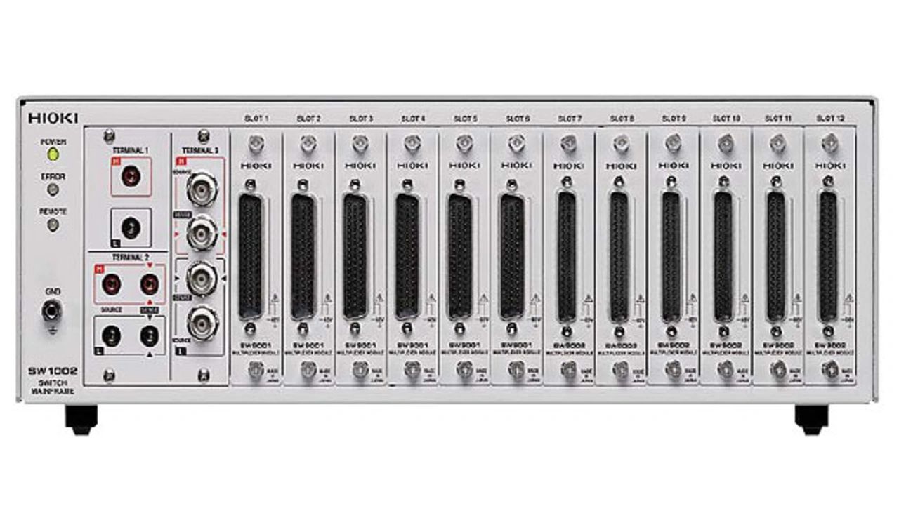 In diesem Fall empfiehlt sich die Verwendung eines separaten Multiplexersystems. HIOKI bietet ein solches System in verschiedenen Ausführungen an und ermöglicht in einer für 4-Draht-Messungen ausgelegten Konfiguration das Ansteuern von bis zu 132 Kanälen mit einem einzigen Messgerät wie dem RM3545 (Konfiguration: SW1002 + 12x SW9001). Die Multiplexereinheit ist dabei nicht auf die Verwendung mit Widerstandsmessgeräten beschränkt, sondern kann ebenso mit HIOKIs Batterietestern, Impedanzmetern oder Voltmetern verwendet werden – vorausgesetzt die Messspannungen liegen unterhalb von 60 V.
