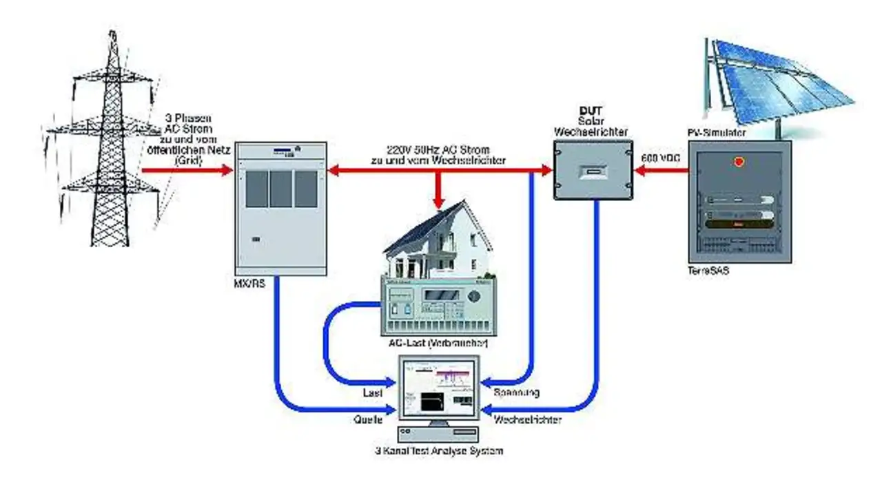 AC-Quellen dienen u.a. dazu, die Störfestigkeit von Wechselrichtern zu prüfen. Beim Test von solchen rückspeisefähigen Geräten liegt die Besonderheit nun darin, dass die AC-Quelle zusätzlich zu der Spannungsversorgung auch für die Rückspeisung der Spannung seitens des zu testenden Gerätes ausgelegt sein muss.