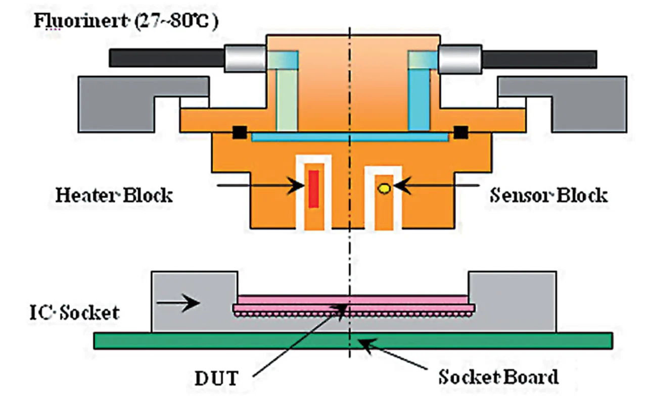 Werden Stress-Pattern während des Burn-in-Tests durchgeführt, kann sich die Chiptemperatur der Bauteile schnell ändern, wodurch die Bauteile in der Temperaturkammer erheblich unterschiedliche individuelle Temperaturen haben können. Um eine Überhitzung und Schädigung der einzelnen Bauteile zu vermeiden, ist daher eine genaue Temperaturüberwachung und Regelung für jedes Bauteil erforderlich. Bei normalen Burn-in-Testsystemen werden mehrere hundert Bauteile in einer Testkammer durch Aufheizen und Umwälzen von Luft in der Kammer auf die eingestellte Temperatur gebracht. Bauteile mit hoher Eigenleistung können beim aktiven Test eine Verlustleistung von mehreren Watt bis über 200 W entwickeln und sich somit deutlich über die Umgebungstemperatur in der Kammer erwärmen. Da die Chiptemperatur von mehreren Parametern abhängt, können sich bei den einzelnen Bauteilen unterschiedliche Temperaturen einstellen, was keine einheitlichen Testbedingungen für alle Chips gewährleistet. Hierdurch ist eine korrekte Funktion des Burin-in-Prozesses nicht sichergestellt.