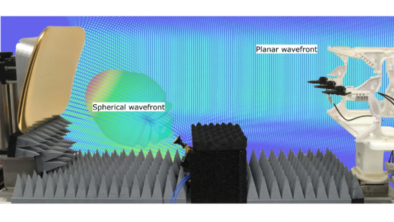Ein Compact Antenna Test Range (CATR)-Messsystem setzt einen Spiegel ein, um eine kugelförmige Wellenfront in eine ebene Wellenfront umzuwandeln und umgekehrt. Nach Fermats Prinzip der extremalen Laufzeit kann eine ebene Welle mit Hilfe eines Parabolspiegels in einem Punkt gebündelt werden. Wird eine Messantenne in diesem Brennpunkt positioniert, kann aufgrund des Reziprozitätsprinzips eine ebene Welle erzeugt werden: Der Parabolspiegel reflektiert eine bestimmte ebene Komponente der von der Mess-(oder Speise-)Antenne (Bild 2) abgestrahlten Kugelwelle in die Zone, in der sich der Prüfling befindet (QZ).