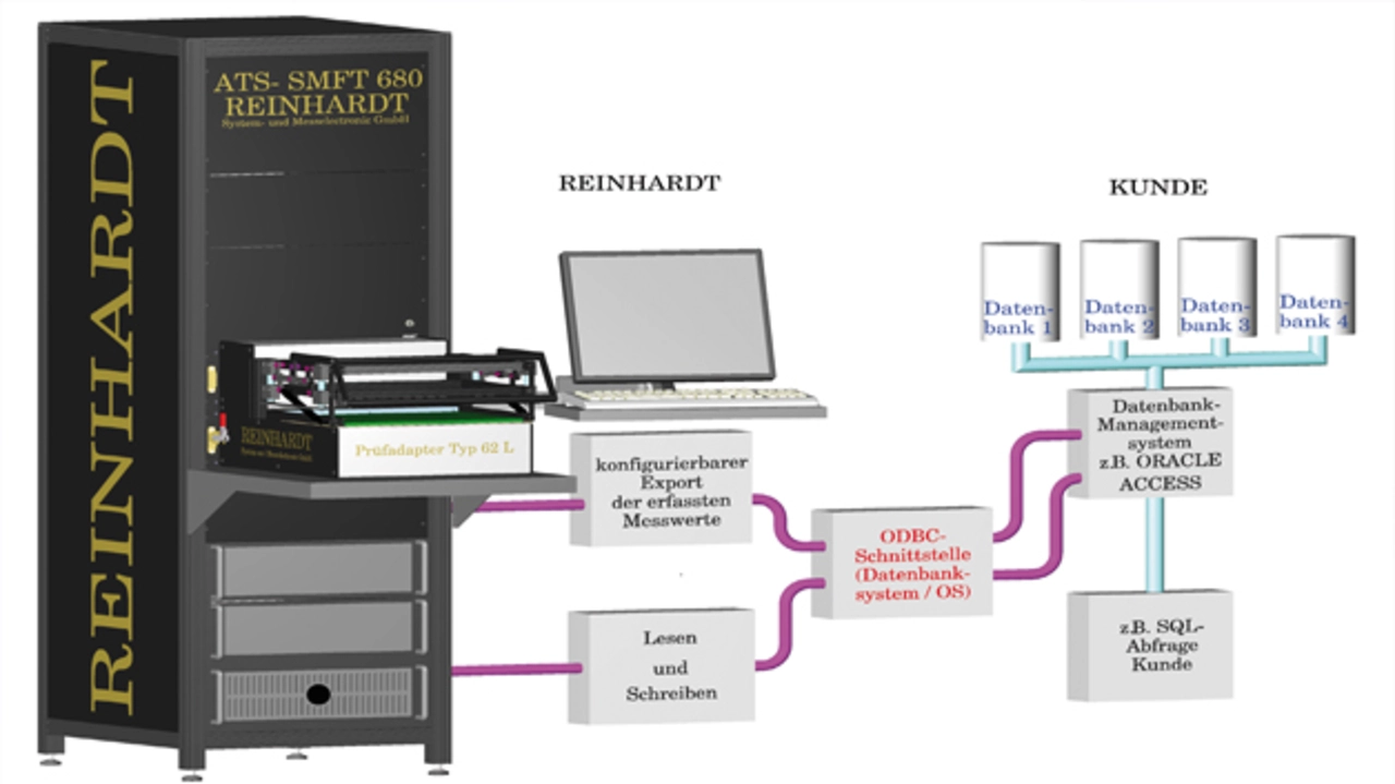 Mehrfachnutzen können im In-Circuit- und Funktionstest ebenfalls geprüft werden. Dabei genügt es, das Programm für ein Modul zu pflegen und es automatisch in die verbleibenden Module kopieren zu lassen. Danach zeigt der Bildschirm die einzelnen Module bei erfolgreichem Test in grün und bei fehlerhaftem in rot an, wobei für die spätere dezentrale Reparatur alle Parameter zu jedem Modul zur Verfügung stehen. Eine umfangreiche Statistik zeigt an, inwieweit die vorgegebenen Parameter erreicht werden. So ist über die Qualität des Produktes einzeln, aber auch per Fertigungslos oder sogar für mehrere Jahre eine statistische Auswertung möglich. Mit der optionalen ODBC-Schnittstelle (Open Database Connectivity) ist es möglich, beliebige Daten und Prüfergebnisse des Testsystems einer Datenbank zur Verfügung zu stellen (Bild 1). So lassen sich auf diesen Datenbanken die Prüfergebnisse abspeichern, verwalten und in einem Qualitätsmanagementsystem auswerten.