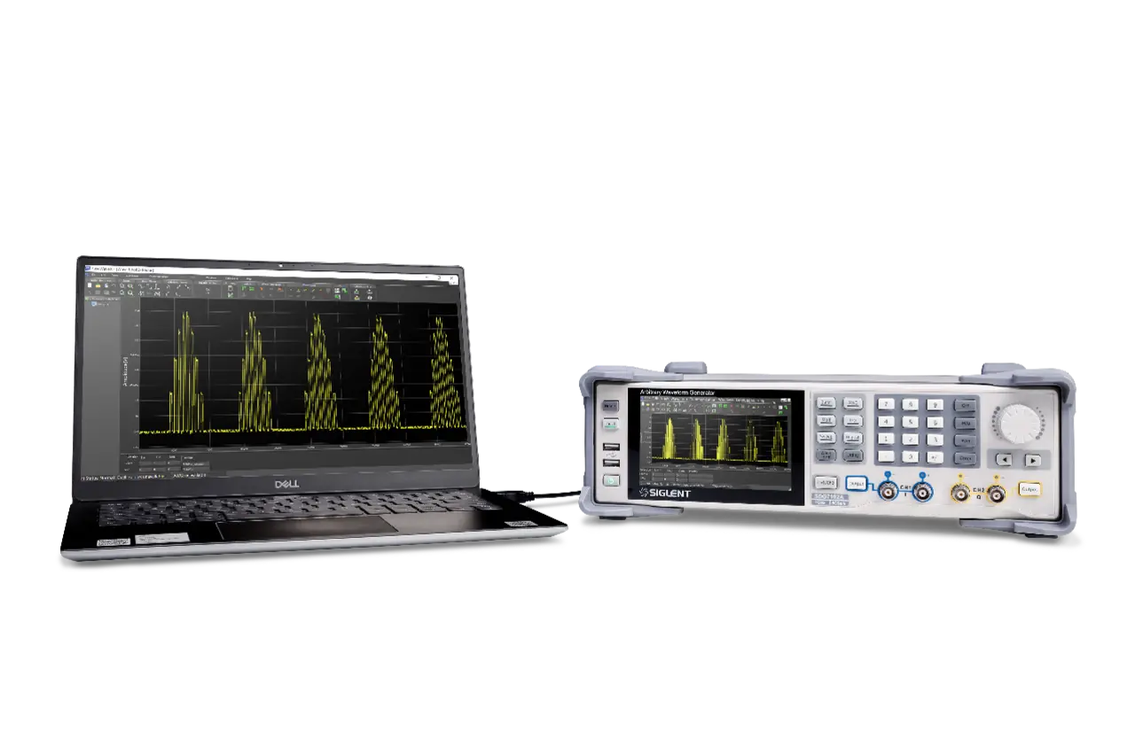 Der SDG7000A von Siglent ist hier besonders leistungsfähig und flexibel. Die Geräte sind mit den Bandbreiten 350 MHz, 500 MHz und 1 GHz erhältlich. Die beiden unabhängigen Kanäle können einfach per Menüsteuerung kombiniert werden, um z. B. Störungen auf dem Nutzsignal zu simulieren oder um komplexe, modulierte Signale zu erzeugen. Neben allen Standardkurvenformen wie Sinus, Rechteck, Dreieck und Puls können die Generatoren der Serie Gauß’sches Rauschen mit der gerätespezifischen Bandbreite oder aber auch bandbegrenzt ausgeben. Ferner ist es möglich, dieses Rauschen einfach per Menüeinstellung auf das Nutzsignal aufzuaddieren. Die Erzeugung von Zufallsbitsequenzen (PRBS) ist ebenfalls eine Standardfunktion. Alle Geräte sind mit 512 MPkt Speicher für die Erstellung selbstdefinierter Signale ausgestattet. Mithilfe der TrueArb-Technologie von Siglent, einer Punkt-für-Punkt-Ausgabe mit bis zu 2,5 GS/s Abtastrate, können die Nachteile der DDS-Technologie beseitigt werden und Arbiträrsignale mit hoher Wiedergabegenauigkeit und reduziertem Jitter erzeugt werden. Die Erzeugung der benutzerdefinierten Signale ist mit der Siglent Software EasyWave oder direkt am Gerätedisplay möglich. Zusätzlich besteht auch die Möglichkeit, arbiträre Kurven aus Text- bzw. CSV-Files zu importieren. Im Sequenzmodus können verschiedenste Kurvenformen lückenlos aneinandergereiht werden. Hierbei kann für jedes Segment der Kurve die Anzahl der Wiederholungen definiert werden. Somit wird der verfügbare Arbiträrspeicher optimal ausgenutzt und es können komplexe Testsequenzen einfach zusammengestellt werden.