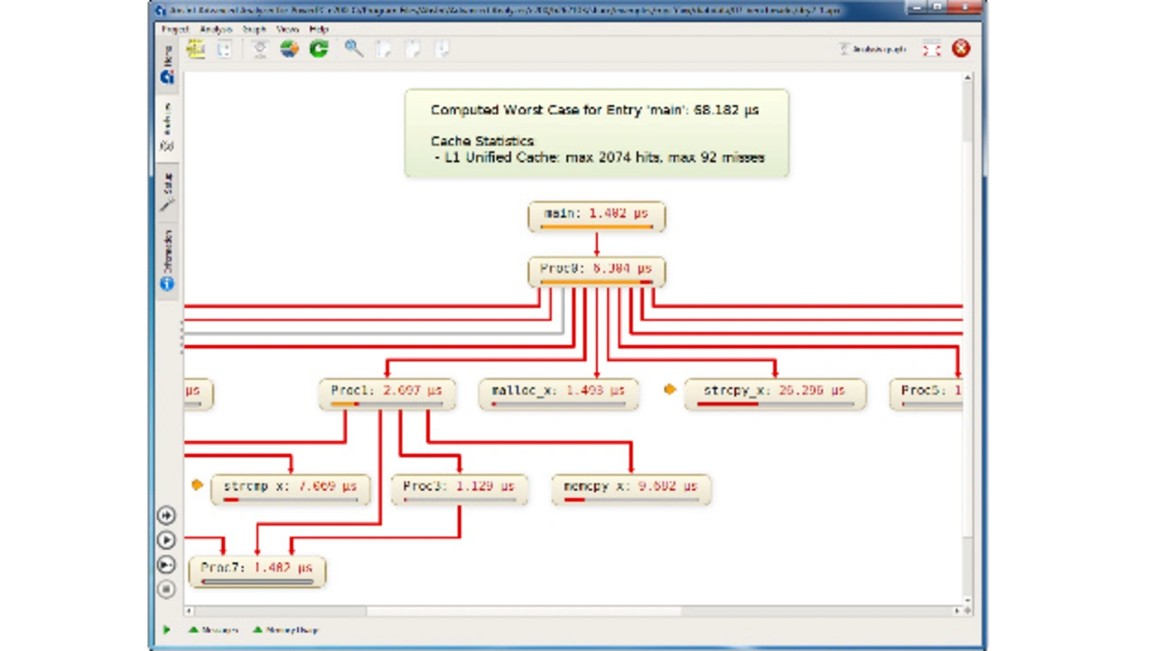 Die beschriebene Methode ist in der Werkzeugfamilie aiT der Firma AbsInt realisiert. Die Zeitanalyse ist stark von der jeweiligen Ausführungsplattform abhängig. Jede Ausführung eines aiT-Werkzeugs für eine spezielle Architektur enthält ein abstraktes Modell der Plattform. Die Modellierung einer neuen Plattform ist sehr aufwendig und benötigt eine präzise Beschreibung dieser Plattform. Der größte Teil dieser Beschreibung, z.B. die des Prozessors, wird vom Werkzeugentwickler in das Werkzeug integriert. Eventuell bleibt ein Rest übrig, welcher vom Systementwickler per Annotation dem Werkzeug bekannt gemacht werden muss. Dieser Rest betrifft die spezielle benutzte Hardwarekonfiguration, z.B. die Speicher- und Cachekonfiguration mit ihren Parametern. aiT wurde inzwischen für viele Plattformen realisiert. Die Wichtigsten sind viele Mitglieder der Freescale PowerPC-Familie, Renesas V850, verschiedene Infineon TriCore/AURIX-Prozessoren, LEON 2 und LEON 3.