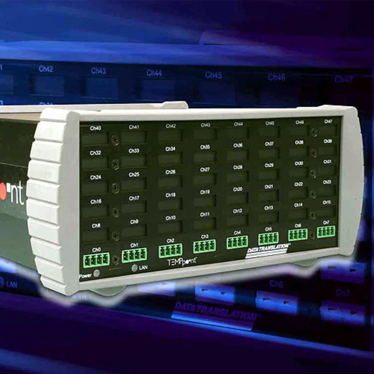 Oft braucht man zur automatischen Temperaturüberwachung (oder zur Spannungserfassung und Widerstandsmessung) nicht gerade 32 oder mehr Kanäle; manchmal reichen auch acht. Für derartige technisch und kostenmäßig angepasste Anforderungen hat Data Translation (www.datatranslation.de) seine Temperaturmessgeräte-Serie TEMPpoint um ein Lowcost-Modell mit nur acht Eingangskanälen ergänzt (Bild 2). Auch die neue Version verfügt aber über je einen separaten 24-bit-A/D-Wandler pro Kanal (Abtastfrequenz bis zu 10 Hz) und ist in vier Ausführungen erhältlich: mit USB- oder Ethernet-Anschluss (inkl. integriertem Web-Server) und mit Thermoelement- oder RTD-Eingängen. Im Prinzip umfasst die gesamte Gerätefamilie damit nun Modelle mit 8, 16, 24, 32, 40 oder 48 Kanälen. Für Applikationen, die noch mehr Kanäle erfordern, lassen sich mehrere Geräte kombinieren. In den Vertrieb kommen die Erfassungssysteme als Tischmodelle oder als 19-Zoll-Einbauvarianten; für Genauigkeit und Signalintegrität sorgen neben der 24-bit-A/D-Wandlertechnik auch eine Kaltstellenkompensation je Kanal, eine automatische Kalibrierung und die galvanische Isolation aller Kanäle gegeneinander bis zu einer Spannung von 1000 V. Über abnehmbare Schraubklemmen lassen sich – je nach Modell – die üblichen RTD-Sensoren (Pt100, Pt500, Pt1000) mit 2-, 3- oder 4-Draht-Technik anschließen. Für die Thermoelemente wird der übliche Omega-Cu-Cu-Stecker verwendet. Die Linearisierung für die Sensortypen B, E, J, K, N, R, S und T erfolgt automatisch. Alle Versionen verfügen zudem über acht opto-isolierte digitale Ein- und acht opto-isolierte digitale Ausgänge z.B. für die Ansteuerung von Relais; sie werden mit Software messbereit geliefert. Die web-basierte Anwendung ermöglicht die einfache Erfassung, Visualisierung, Speicherung und Auswertung der Messdaten. Darüber hinaus sind die Überwachung von Grenzwerten und die Steuerung externer Funktionen möglich.