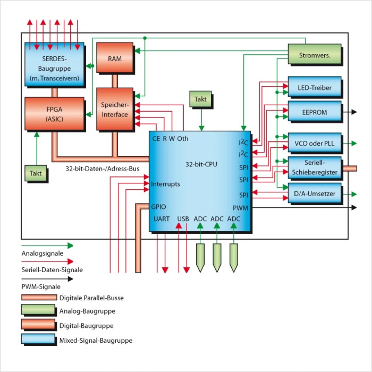 Viele Entwicklungsingenieure aus den Bereichen Elektronik, Maschinen- und Automobilbau oder auch der Automatisierungstechnik sind mit einer sehr breiten Palette von Messaufgaben konfrontiert. In Bild 1 ist ein typisches Prozessor-System mit den vorhandenen und zu messenden Signalen dargestellt.