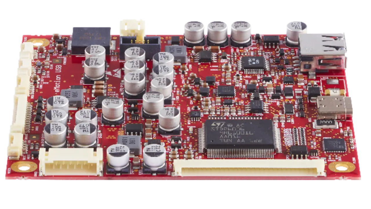Kompakter und auf eine Display-Ansteuerung mit möglichst wenigen Schnittstellen ausgelegt, ist die USB-Variante der eMotion Controller-Boards. Über die USB-Typ-C-Eingangsschnittstelle der Boards wird neben Display Port-Signalen im Alternate Mode auch Leistung bis 36 W (maximal 3 A bei 12 V) gemäß USB Power Delivery Spezifikation bereitgestellt. Die Display-Ansteuerung geschieht über eine interne LVDS-Schnittstelle (Dual Channel), die Displays mit Auflösungen bis 1920 x 1200 (WUXGA) unterstützt. Ein USB-2.0-Eingang ist für Eingabegeräte vorhanden und ein zweiter, interner USB-2.0-Eingang für den Anschluss eines Touch-Controllers. Das Board hat eine Grundfläche von 80 x 100 mm², eine Höhe von 10 mm und ist auf eine Betriebstemperatur zwischen 0 und +60 °C spezifiziert.