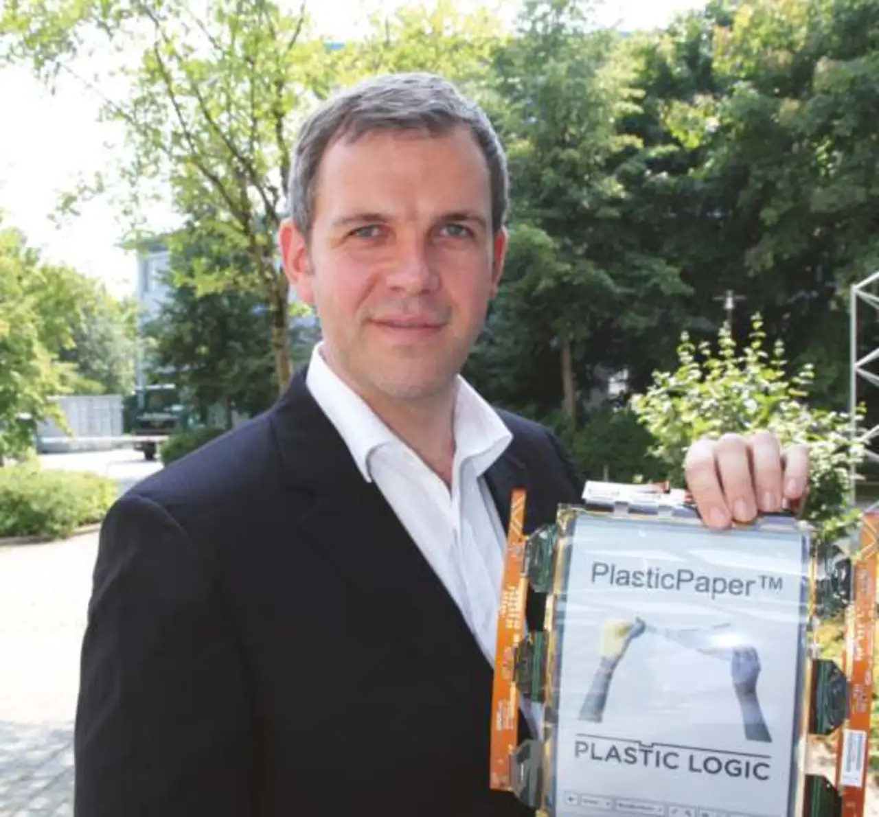 Dr. Bernd Zimmermann, Plastic Logic: »Als erstes Unternehmen unserer Branche sind wir heute in der Lage, Filmsequenzen mit einer Wiederholrate von 12 Frames pro Sekunde auf unseren flexiblen Displays wiederzugeben.«