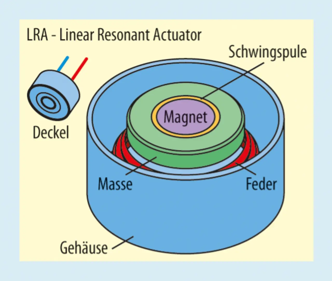 Natürlich kann eine Oberfläche auch direkt mit einer Magnetspule, einem Solenoid, in Bewegung versetzt werden, ähnlich einem LRA. In diesem Fall gelten für Bauraum und Spannungen dieselben Aspekte. Die so erzeugten Impulse sind deutlich ausgeprägt, fühlen sich aber nicht wie ein Schalter an.