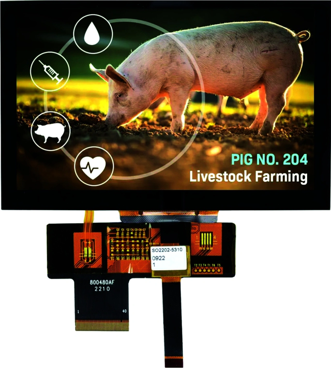 Bild 3 zeigt das kapazitive 5-Zoll-Touch-Display von Newhaven Display in einer Anwendung der landwirtschaftlichen Nutztierhaltung. Das Display und die Touchscreen-Steuerung erfordern 3,3 V DC bei bis zu 72 mA und die Hinterleuchtung 21 V DC bei 60 mA. Der Sichtwinkel beträgt typischerweise 80°, und das Display bietet ein durchschnittliches Kontrastverhältnis von 1000.