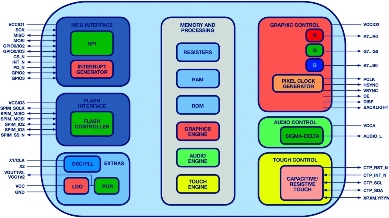 Die UI- und Gehäuseanforderungen beeinflussen die Displaygröße stark und erfordern diverse technische Überlegungen. Die elektrischen Spezifikationen der Versorgungsspannung(en) und der Stromaufnahmne sind zentrale Aspekte, besonders für akkubetriebene Geräte. Die Host-Schnittstelle ist ein weiterer wichtiger Faktor; meist wird eine serielle Verbindung mit hoher Geschwindigkeit wie UART, SPI oder HDMI benötigt. Eine I2C-Verbindung kann für kleinere Displays mit weniger Datentransfer ausreichend sein.
