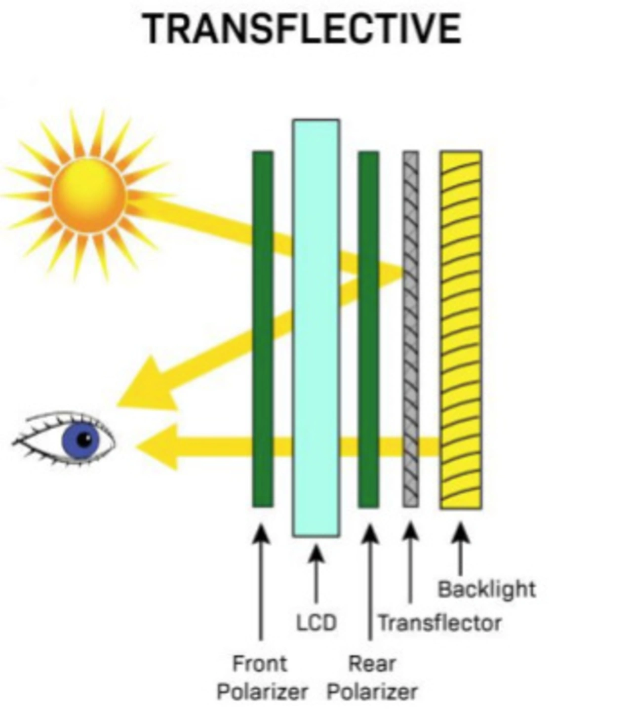 Transflektive TFT-Panels verwenden eine »Transflector«-Linse hinter dem hinteren Polarisator, durch die das Umgebungslicht wie eine LED-Hintergrundbeleuchtung genutzt wird. Im Vergleich zu herkömmlichen transmissiven TFT-Displays bieten sie dadurch bei ähnlichem Stromverbrauch und gleicher Größe eine deutlich bessere Lesbarkeit bei direkter Sonneneinstrahlung und ähnlich schwierigen Lichtverhältnissen.