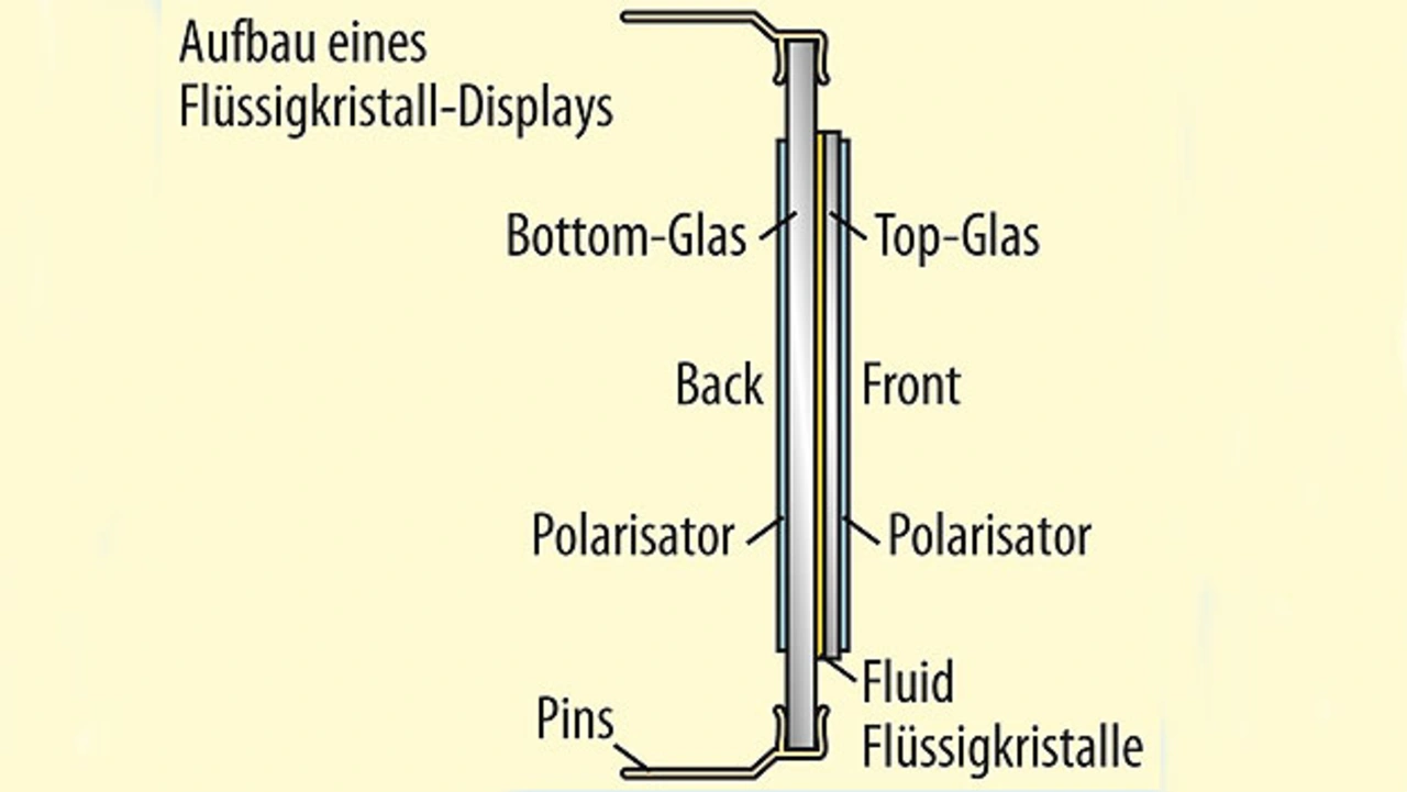 Der schematische Aufbau eines LCD verdeutlicht die unterschiedliche Materialzusammensetzung (Bild 3). Daraus folgt auch, dass sich die einzelnen Komponenten beispielsweise in unterschiedlichem Maß thermisch ausdehnen. Die erste und allgemeingültige Empfehlungen zur Handhabung ist daher die strikte Einhaltung der Raum- und Lagertemperatur gemäß den in der Display-Spezifikation angegebenen Werten. Typische Schadensbilder bei Lagerung unter zu hoher Luftfeuchtigkeit (>60 %) sowie Temperaturen außerhalb der spezifizierten Werte sind Ablösen und Blasenbildung an der Polarisatorfolie.