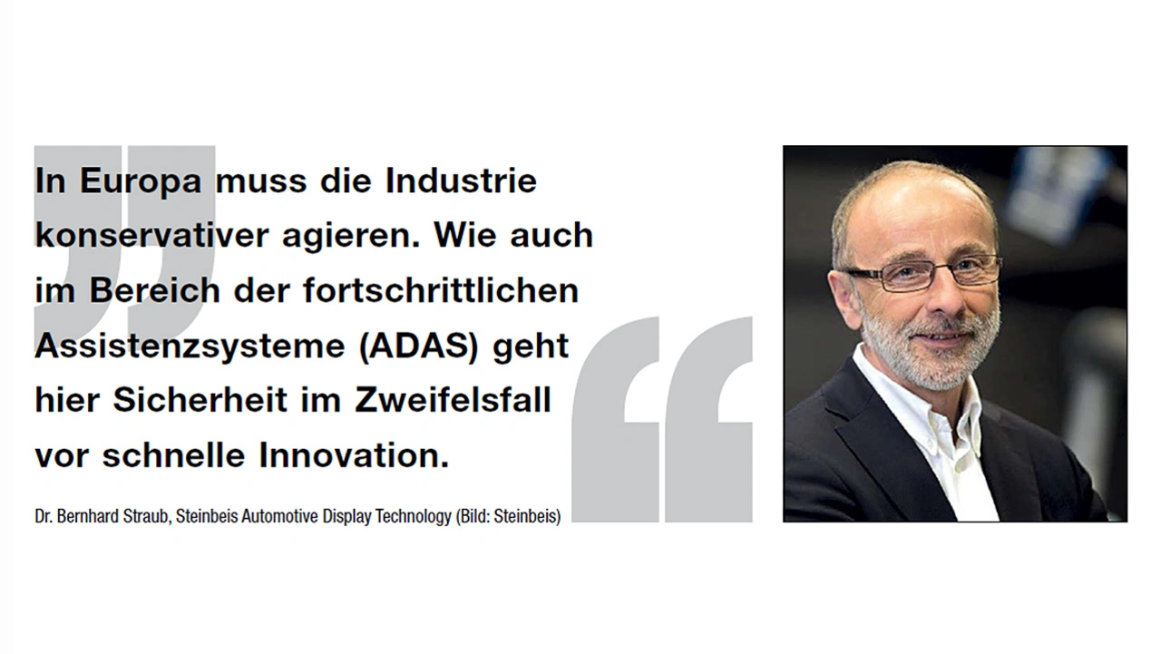 Während Europa in dieser Frage am restriktivsten vorgeht und die Nutzung von Funktionen wie Videos oder Browsing für den Fahrer während der Fahrt weitestgehend verbietet, und Amerika bislang etwas liberaler agiert, gibt es in China kaum Einschränkungen für den Fahrer sowie völlige Freiheit auf den anderen Plätzen. »In China wollen die Kunden im Auto Unterhaltung und Spiele nutzen wie auf ihrem Smartphone«, beobachtet Steinbeis-Direktor Dr. Bernhard Straub.