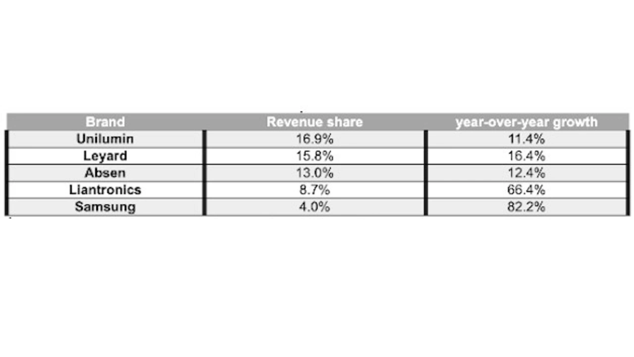 Laut Omdia führte Unilumin im Jahr 2019 mit einem Anteil von 16,9 Prozent den weltweiten Markt für LED-Videodisplays an. Im gleichen Zeitraum übertraf Absen die Einnahmen in Übersee, die sich aus dem globalen Markt ohne China zusammensetzen, während Leyard die Führung bei den FPP-Einnahmen behielt.