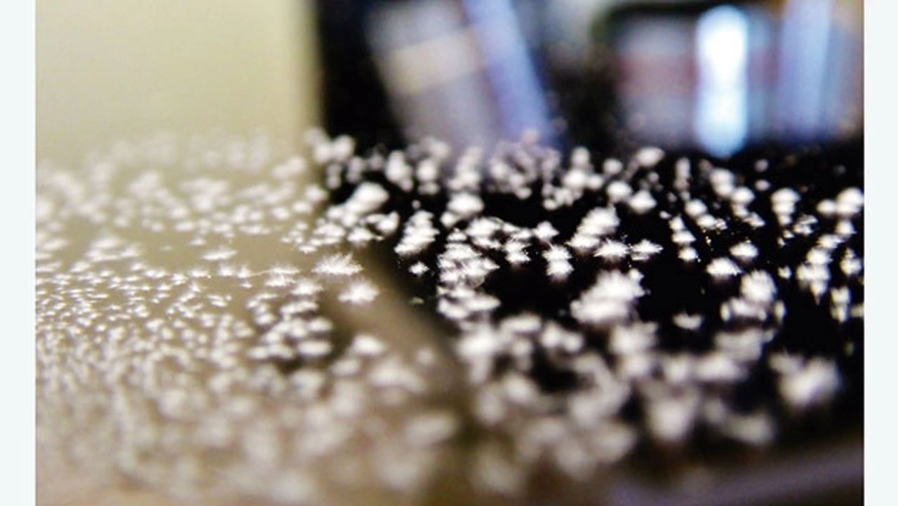 Display-Fehlfunktionen oder deren Ausfall entstehen in nicht wenigen Fällen schlichtweg durch Undichte und Kontamination. Eingedrungene Feuchtigkeit verursacht dabei nicht nur Korrosion oder Kurzschlüsse, sondern ist auch Grund für Pilzbefall wie Schimmel oder lebenden Befall wie Milben. Schimmel (Bild 6) entsteht dann, wenn Sporen aus der Umgebungsluft in undichte Displays eindringen beziehungsweise bereits beim unsachgemäßen Verbau ins Innere gelangen und auf Mini-Feuchtbiotope aus Feuchtigkeit oder temperaturbedingter Kondensation treffen. Das entstandene Problem ist zeitkritisch: Je länger der Schimmel unentdeckt bleibt, desto mehr kann er sich ausbreiten und desto größer ist die Kontamination der Anzeige durch die ätzenden Ausscheidungen der Pilze selbst.