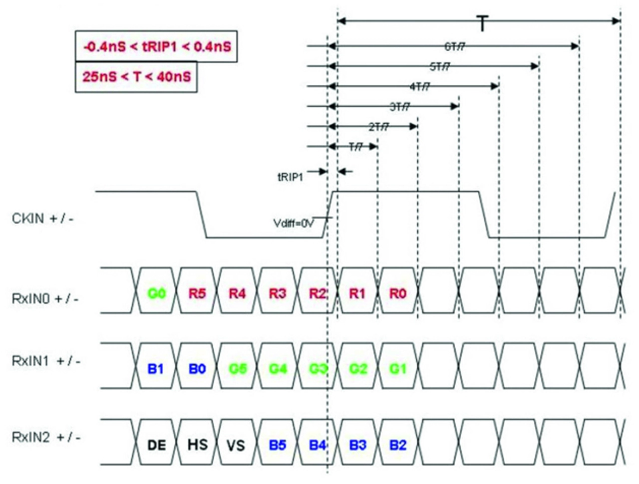 Das Signalformat dieser Schnittstelle wurde in ähnlicher Form bereits für Passiv-Matrix-Displays verwendet. Je Farbe werden sechs oder acht Bits parallel auf den Bus des Moduls gelegt und mit einem Taktsignal in den Treiber übernommen. Für die Synchronisation auf den Zeilen- oder den Bildschirminhalt gibt es separate Signale. Durch die parallele Übertragung der Bilddaten ist der Leitungsaufwand hoch. Typische Stecker haben 30 Kontakte. Da die elektrischen Eigenschaften der Leitung zwischen Controller und Display nicht näher spezifiziert sind, können nur kurze Distanzen von 30 bis 50 cm überbrückt werden. Darüber hinaus wurde bei der Definition der Schnittstelle keine Rücksicht auf abgestrahlte elektromagnetische Störungen genommen. Die Ausgangsstufen schalten die Pegel mit hoher Flankensteilheit. Tabelle 3 zeigt die Signale anhand der Steckerbelegung eines TFT-Moduls.