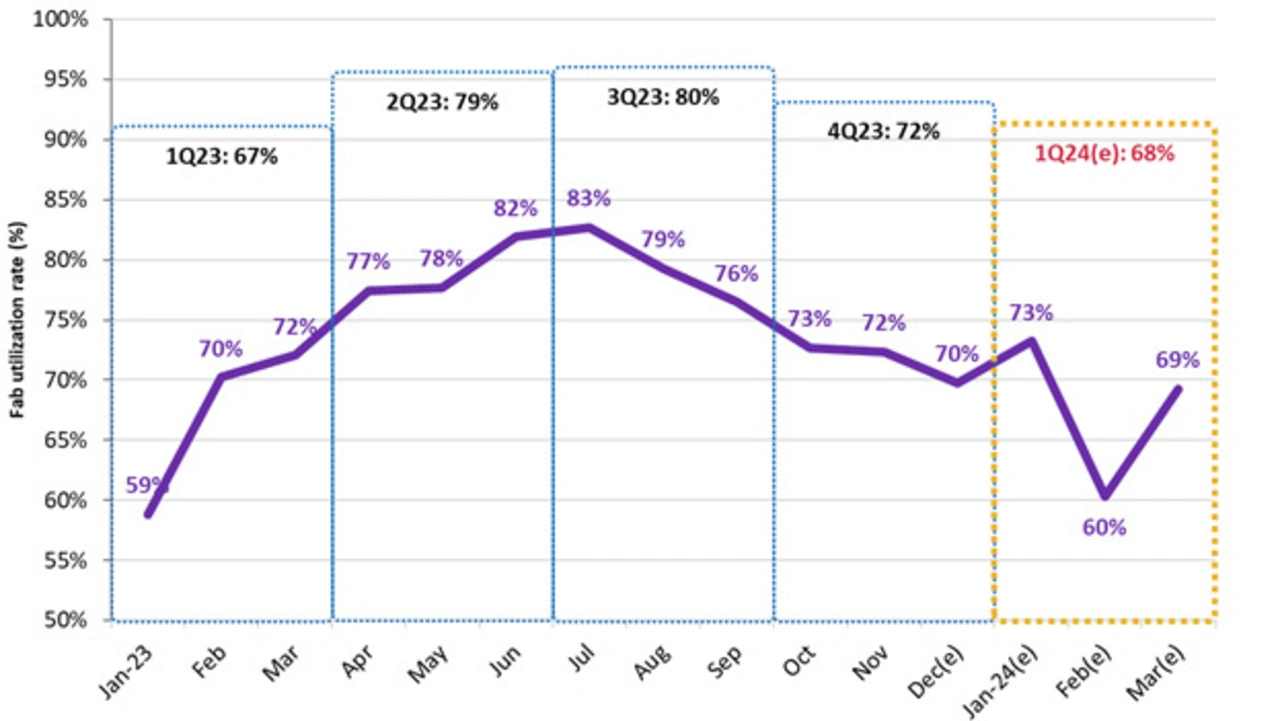 Die Hersteller von LCD-Panels dürften ihre Produktion zum Jahresanfang weiter herunterfahren. Im Februar soll die durchschnittliche Auslastung der Fabriken auf 60 Prozent fallen, einige chinesische Hersteller könnten sogar nur noch die Hälfte ihrer Fertigungskapazität nutzen.