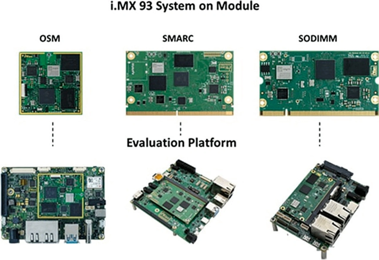 Flexible Formfaktoren: Das SoM i.MX 93 ist in einer Vielzahl von Formfaktoren erhältlich, darunter SMARC, SODIMM und der neueste OSM-Standard (Bild 1). Jeder Formfaktor wurde entwickelt, um spezifische Anforderungen von Anwendungen zu erfüllen, sei es eine kompakte Größe für platzbeschränkte Geräte oder eine erweiterte Vernetzung für komplexere Systeme. Dank dieser Flexibilität können Produktentwickler den für ihre Anforderungen am besten geeigneten Formfaktor auswählen und so die Komplexität des Designs verringern und die Zeit bis zur Markteinführung verkürzen.