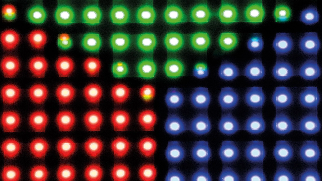 Ein nächster Quantensprung, der das ursprüngliche Hinterleuchtungskonzept des TFT-Displays hinter sich lässt, ist das echte LED-Display, auch »Direct LED« genannt. Bei diesem Display erfolgt die Darstellung von Pixeln nicht mehr über eine hinterleuchtete Flüssigkristallanzeige, sondern durch die Ansteuerung einzelner LEDs in jedem RGB-Pixel (Bild 2).