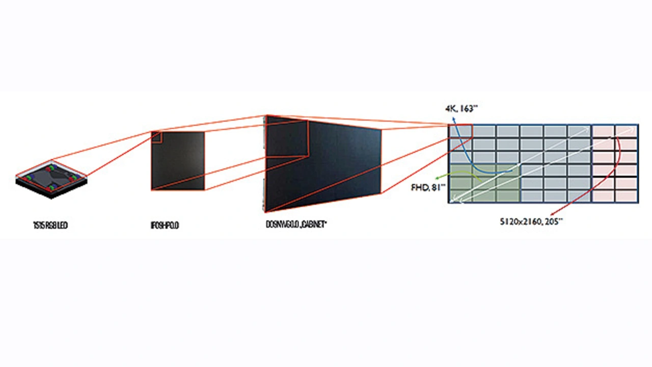Neue Mini-LED-Displays punkten mit einem LED-Pitch unter 1 mm, und dank des modularen Aufbaus ist diese Technologie nahezu unendlich dimensionierbar – von beispielsweise der Größe einer Handfläche bis hin zu einer Videowall in 4K-Auflösung bei 163 Zoll oder noch größer.