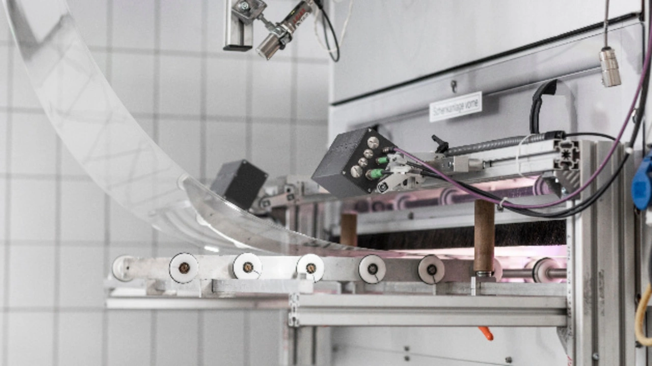 Das Material ist vor der Verarbeitung hochspröde. Normalerweise basiert das Aufwickeln von Substratmaterialen auf elastischer Dehnung – das ist bei Glas quasi nicht möglich. Um Glasbrüche zu vermeiden, muss das Glas also von Rolle zu Rolle sehr exakt geführt und behandelt werden. Der aktuelle Stand der Technik zum Aufrollen von Kunststoff reicht hier nicht aus, weil dieser elastisch ist und sehr gutmütig bei kleinen Abweichungen der Rollenparallelität reagiert. Die Toleranzschwelle von Glas liegt hingegen deutlich niedriger, weshalb mechanische Verspannungen ganz leicht zu Brüchen führen können. Die Rollen müssen daher sehr exakt ausgerichtet sein; sehr viel präziser als bei Kunststoff.