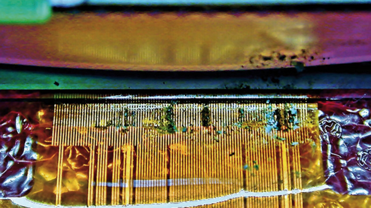 Hinter das Glas darf der Touch-Sensor. In mittlerweile fast hundert Prozent der Fälle ist das ein Multi-Touch, weil typischerweise mindestens zwei Berührungen zum Drehen oder Zoomen detektiert werden müssen. Entsprechend wird mittels Optical Bonding ein PCT an die Glasscheibe geklebt. Hier tragen alle Variationen von Klebern, Scherkräften und Verfahren zur Fehlerkombination bei: Welcher Kleber passt am besten? Welche Dicke der Klebefuge macht am meisten Sinn? Wird ein UV-härtender Kleber benötigt? Kann UV-Licht bei einem UV-härtenden Kleber an dieser Stelle dann noch durchleuchten oder ist ein Zwei-Komponenten-System doch besser? Abhängig von Materialien, Auswahl und vom Prozess selbst ist nun der Optical Touch an die Scheibe gebondet – eine Vorrausetzung für den nächsten Schritt. Denn: Nun muss der gesamte Prozess inklusive aller Überlegungen wiederholt und das Display verklebt werden.