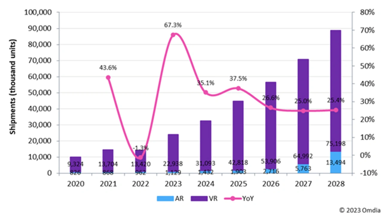 Nach einem schwachen Jahr sagen die Analysten von Omdia dem Markt für Mikrodisplays in XR-Geräten ein deutliches Wachstum voraus – auch weil spekuliert wird, dass Apple dieses Jahr ein Mixed-Reality-Gerät auf den Markt bringt.