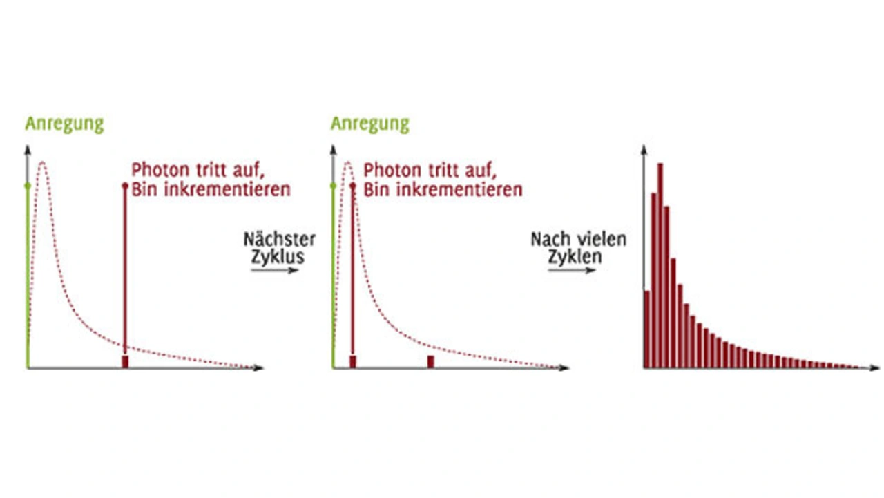 Das TCSPC-Verfahren baut grundlegend darauf auf, dass das Leuchten der Lichtquelle keineswegs ein kontinuierlicher und deterministischer Prozess ist, sondern es sich dabei um die stochastisch verteilte Emission einzelner Photonen handelt.