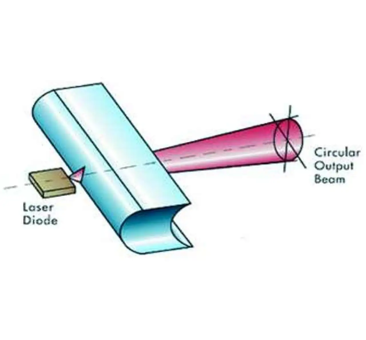 Da Laserdioden ein elliptisches Strahlprofil und einen nicht zu vernachlässigenden Astigmatismus aufweisen, ist es für einige Anwendungen notwendig, durch zusätzliche Optiken einen zirkularen Gaußschen Strahl zu erzeugen. Dies wurde in der Vergangenheit mit einem anamorphen Prismenpaar erreicht. Eine wesentlich platzsparendere Lösung ist es, eine asphärische Mikro-Zylinderlinse direkt in das Gehäuse vor den Laserchip zu setzen (Bild 2).