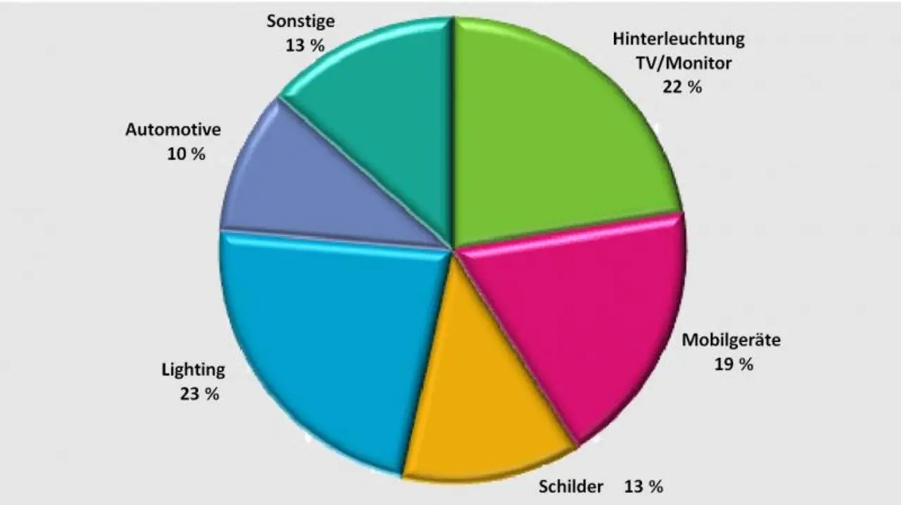 Der Bereich LED-Beleuchtungstechnik hat 2012 zum ersten Mal den der LED-Hinterleuchtung von LC-Displays beim Umsatz übertroffen, wenn auch nur knapp.