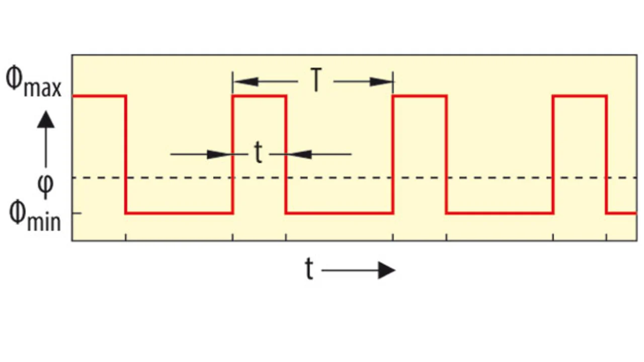 Beim Dimmen der LEDs mit einem standardmäßigen Pulsweitenmodulationsverfahren entsteht eine erhebliche Lichtwelligkeit WLED, die in einem periodischen Flimmern resultiert (Bild 3). Es gilt dabei WLED=(Φmax – Φmin)/Φmittel mit dem Lichtstrom Φ und 1 ≤ WLED < ∞.