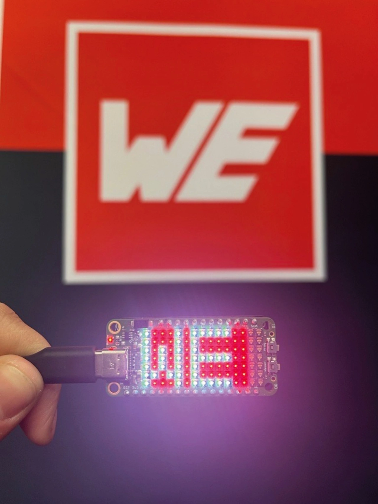 Der IC LED Featherwing (Bild 6) ist ein leistungsfähiges Werkzeug für die Integration des kleinsten IC-LED-Gehäuses von Würth Elektronik (1312020030000) in Mikrocontroller-Projekte, um LED-Anzeigen mit hoher Dichte und individueller Pixelansteuerung zu ermöglichen. Diese IC-LEDs verwenden das 24-Bit-Kommunikationsprotokoll, das eine präzise Steuerung von Farbe und Helligkeit jeder LED ermöglicht. Der Featherwing verfügt über eine 4-Lagen-Leiterplatte für EMV-Konformität, mit speziellen Lagen für VSS und VDD und Routing auf der oberen und unteren Lage. Er wird über einen USB-C-Anschluss (5 V @ 3 A) mit Strom versorgt und kann mit 1,8-V-Logik-Mikrocontrollern verwendet werden.