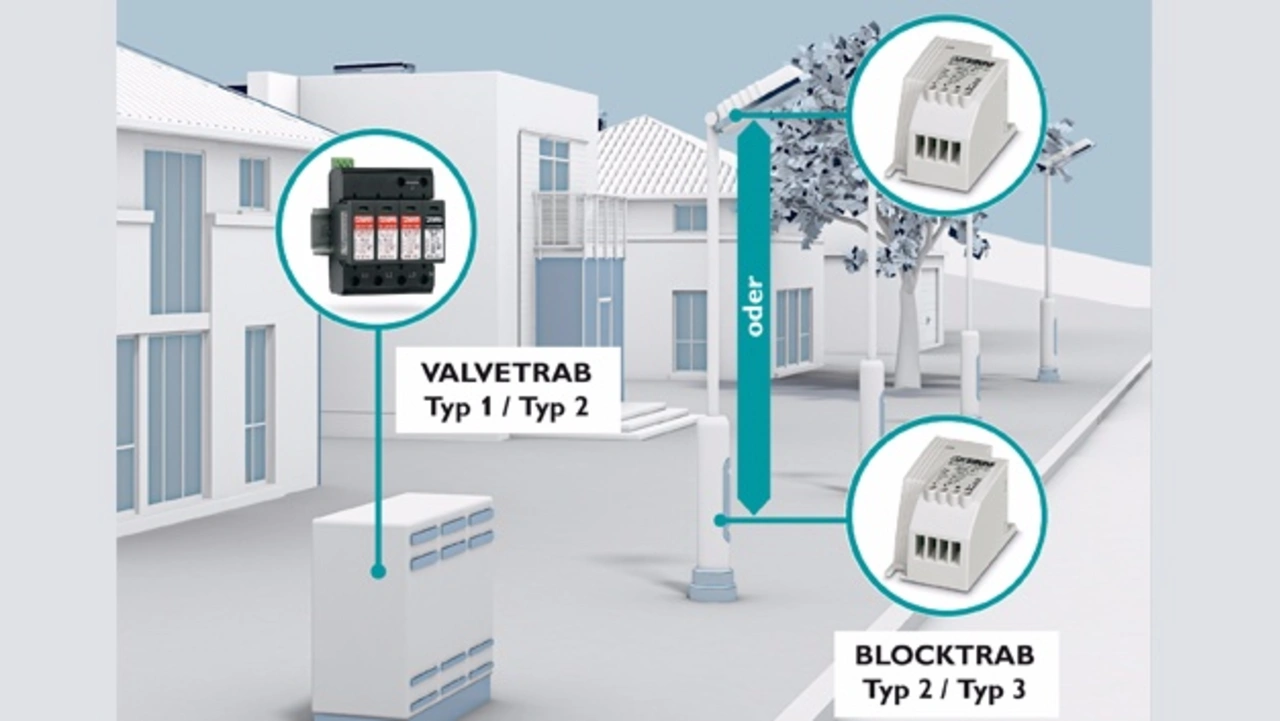 Um die gesamte Installation vor unvorhersehbaren Ereignissen zu schützen, ist ein umfassendes Blitzstrom- und Überspannungsschutzkonzept erforderlich. Ein mehrstufiges Konzept für ein Straßenbeleuchtungssystem auf LED-Basis konzentriert sich auf drei Installationsorte: direkt in der LED-Leuchte, im Kabelübergangskasten am Mastfuß sowie in den Kabelverteilern der Einspeisung (Bild 2).