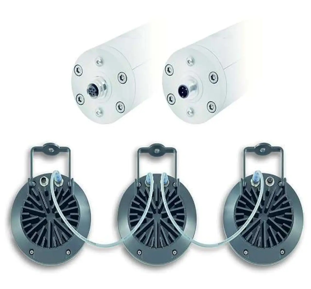 Es entfallen zusätzliche Schaltschrankkomponenten wie Relais oder Sicherungen. Dank der geringen Leistungsaufnahme können mehrere Leuchten (Bild 4) mit Standardverbindungsleitungen hintereinander geschaltet werden.