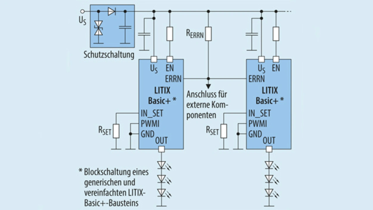 Für Kurzschluss nach Masse und Lastunterbrechung verfügt LITIX Basic+ über eine automatische Restart-Funktion. Hinzu kommt als neue Funktionalität ein Active-Retry-Modus. Dieser trägt dem Umstand Rechnung, dass sich Einzel-LED-Kurzschlüsse nur im eingeschalteten Zustand erkennen lassen.