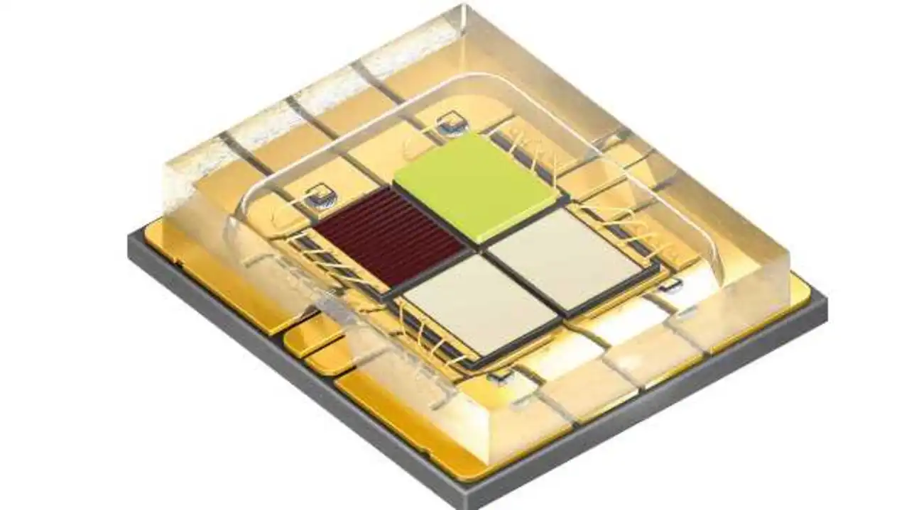 Die Chips sind mit je 2 mm² doppelt so groß wie bisher, wobei die Gehäusemaße der LED mit 5,7 x 6,4 x 1,3 mm nur geringfügig größer werden.