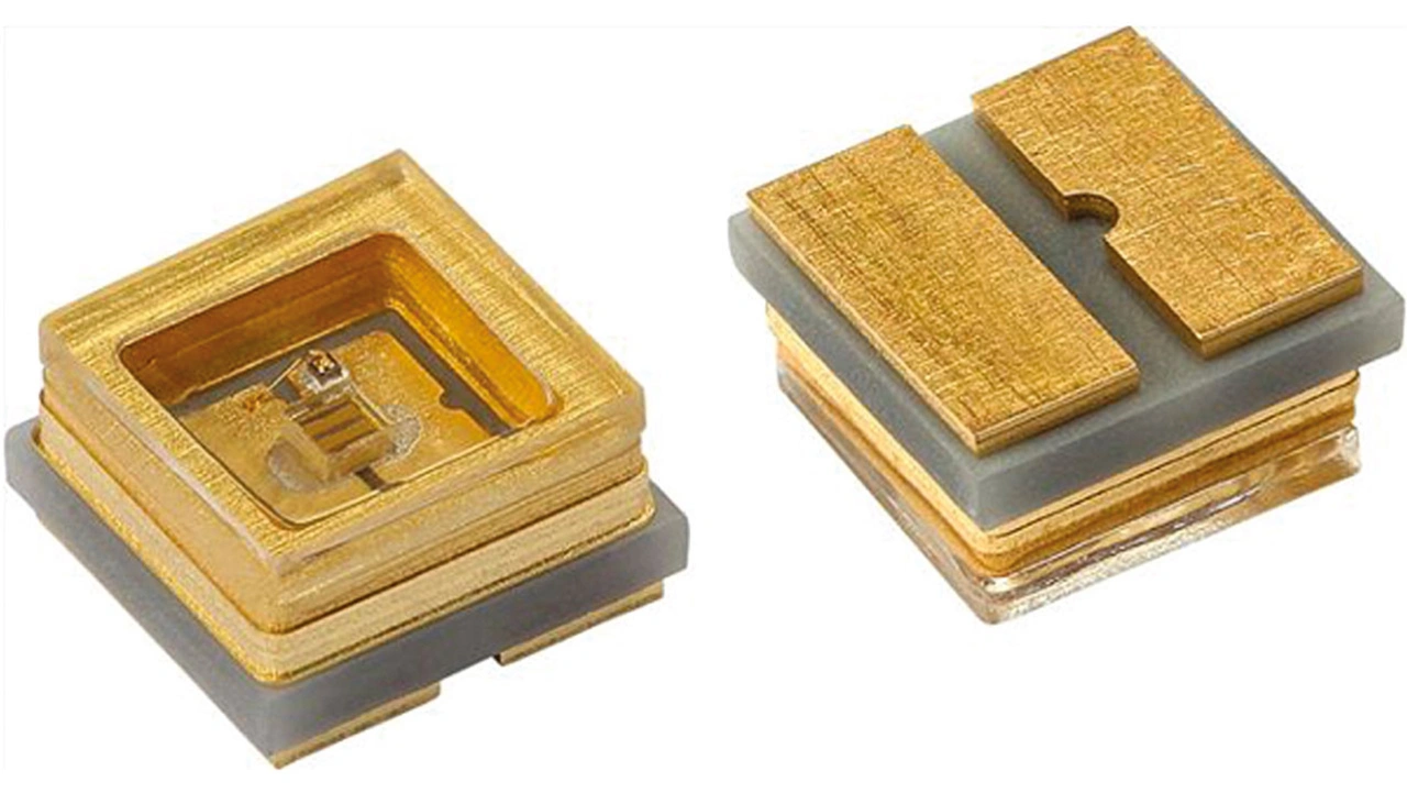 Eine Alternative zur XBT-3535-UV-A130-CC275-01 von Luminus Devices ist die VLMU35CB20-275-120, eine 277-nm-UV-C-LED von Vishay. Diese Komponente ist eine UV-C-LED auf Keramikbasis mit einem Quarzfenster, das zur Verlängerung der Lebensdauer beiträgt. Die Strahlungsleistung der LED beträgt 14 mW bei einem Ansteuerungsstrom von 150 mA und einer Spannung von 6,5 V (Bild 4).