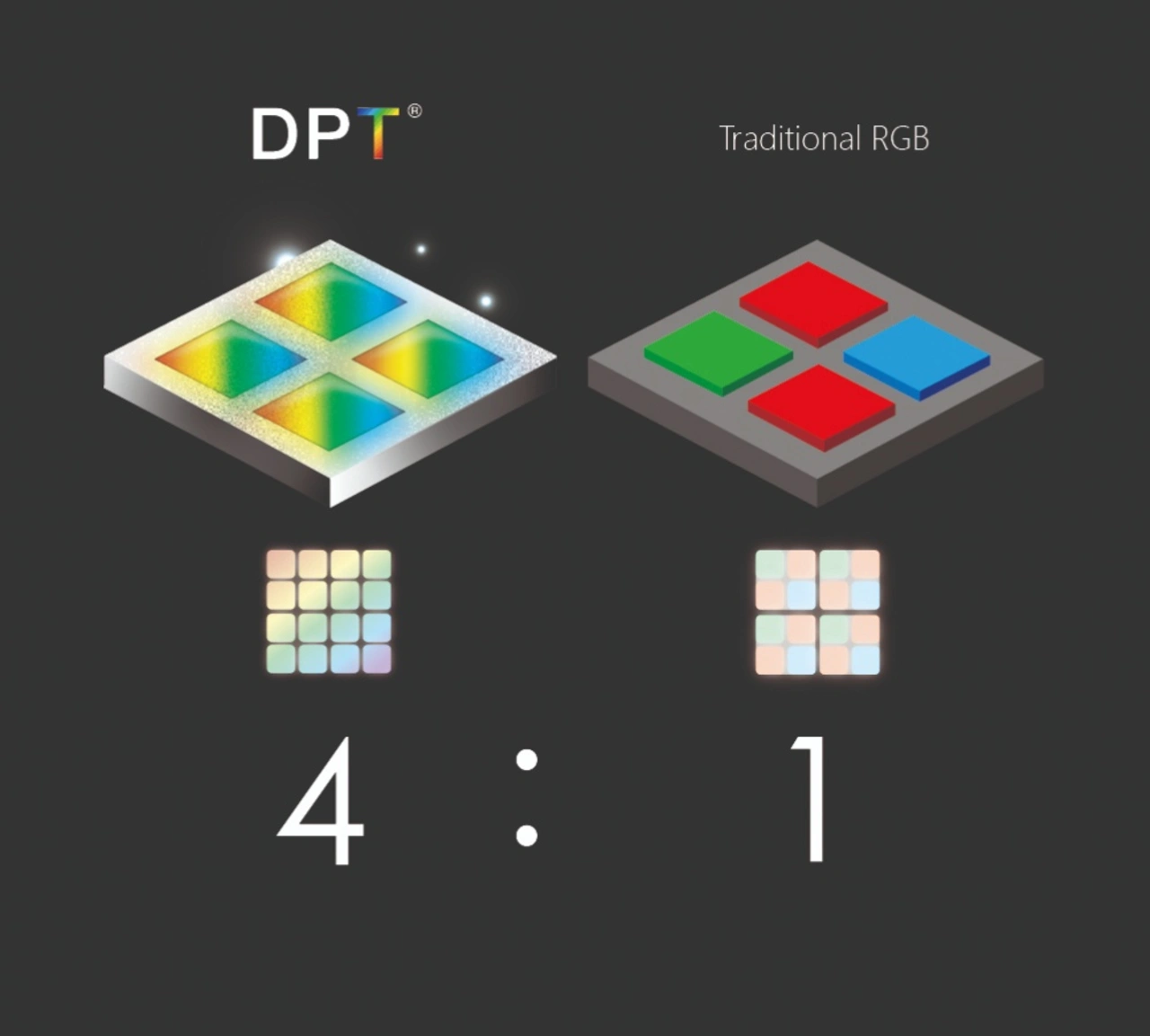 Bisher bilden rote, grüne und blaue LEDs die Subpixel, aus denen jedes Display-Pixel zusammengesetzt wird, sodass jedes Display-Pixel die gewünschte Farbe aus den RGB-Anteilen der Subpixel erzeugen kann. »Mit DPT endet das Zeitalter der Subpixel«, behauptet Porotech.