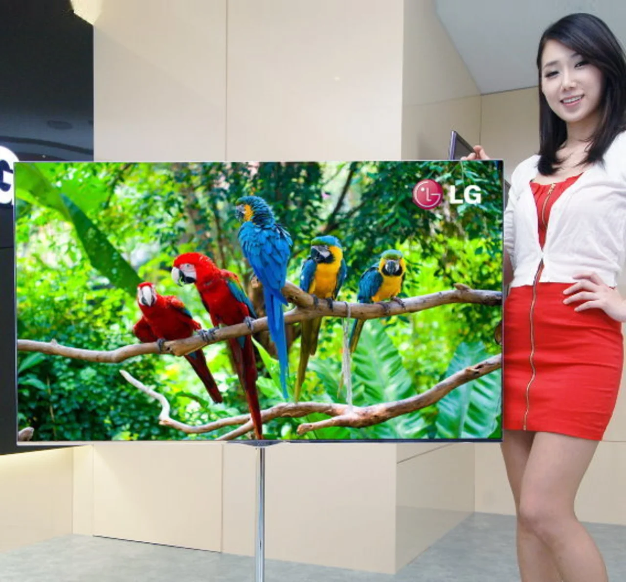 Auf der CES in Las Vegas wird LG erstmals den aktuell weltgrößten Fernseher mit OLED-Display vorstellen. Das TV-Gerät hat eine Bildschirmdiagonale von 55 Zoll und ist mit LGs 4-Farbtechnik ausgestattet. Dort werden anders als bei konventionellen Displays mit RGB-Technik vier statt drei Farben pro Pixel eingesetzt. Die vierte Farbe – weiß – ermöglicht laut LG eine natürlichere Abbildung von Farben und ein leuchtstärkeres Display. Solche Abbildungsqualitäten lassen sich laut LG mit OLED-Technik weit günstiger herstellen als mit vergleichbaren LCD-Panels.