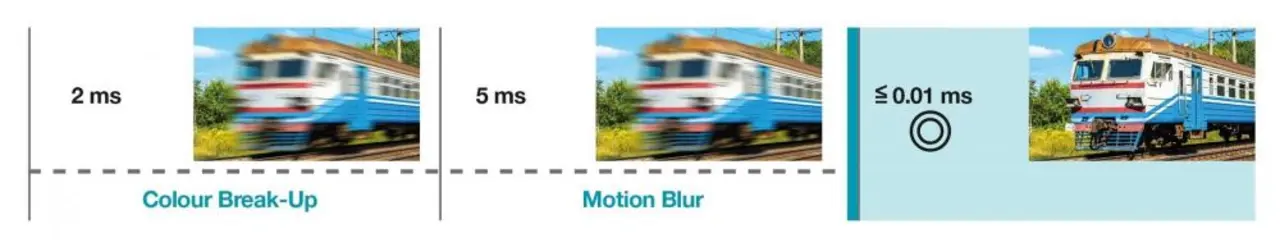 Grundsätzlich lassen sich anspruchsvolle NTE-Applikationen mit verschiedenen technischen Ansätzen lösen. OLEDs liegen hier im Trend, etwa bei EVF und VR; nur für den AR-Bereich hat bisher die notwendige Helligkeit gefehlt. Eine Methode, um Bilder mit hoher Helligkeit zu erzeugen, ist Digital Light Processing (DLP). Das ist eine von Texas Instruments entwickelte Projektionstechnik, bei der ein Mikrosystem (MEMS) innerhalb des Projektionswegs ein Bild durch gezielte Reflexion an schwenkbaren Mikrospiegeln erzeugt. Ein anderer Lösungsansatz sind Flüssigkristallanzeigen (LCDs, Liquid Crystal Displays) und LCoS (Liquid Crystal on Silicon). Allerdings ermöglichen selbst aktuelle LCoS-Varianten aufgrund ihrer inhärenten, lichtblockenden Displaystruktur keine vollständige Abdunkelung der Schwarzwerte. Deshalb ist hier das Schwarz eher ein dunkles Grau, was dazu führt, dass diese Displays Schwächen beim Kontrast zeigen (Bild 1).