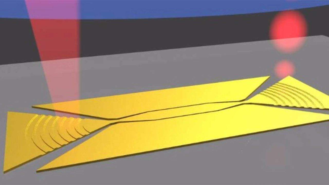 Die Meisterleistung gelang ihnen, indem sie das Element klein genug bauten. Es ist nur 3 x 36 µm groß und liegt damit in einem Größenbereich, in dem sich optische und elektrische Informationen in Metallen ausbreiten können.