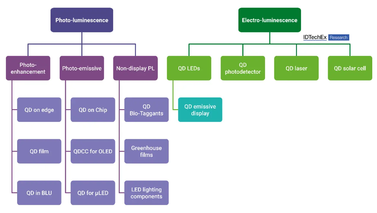 Die Eigenschaften von Quantenpunkten lassen sich über die Partikelgröße, das Material und die Zusammensetzung einstellen. QD-Materialien wie Cd-basierte, In-basierte, PbS-, Perowskite- sowie die neuen CuInS2-, InAs- und ZnTeSe-QDs haben unterschiedliche Bandlücken und damit Absorptions- und Emissionsspektren. Diese Fähigkeit zur Feinabstimmung hat dazu geführt, dass Quantenpunkte ein beträchtliches Anwendungspotenzial haben, vor allem in Displays, Bildsensoren, in der Photovoltaik, in der Beleuchtung und in weiteren Bereichen.