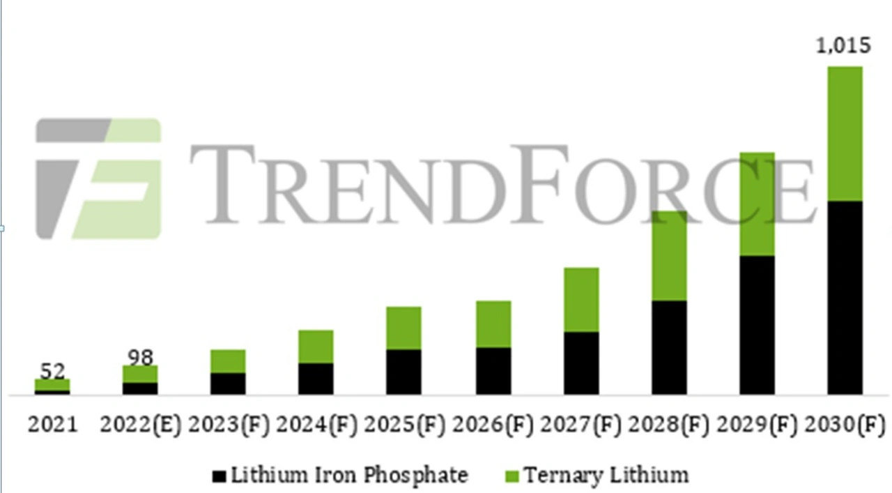 Da EV- und Speicherbatterien in Zukunft in großem Umfang ausgemustert werden, schätzt TrendForce, dass der globale Markt für das Recycling von EV- und Speicherbatterien bis 2030 mehr als 1 TWh betragen wird, wovon der Anteil des Recyclings von Lithium-Eisenphosphat-Batterien mehr als 58 Prozent ausmachen dürfte.