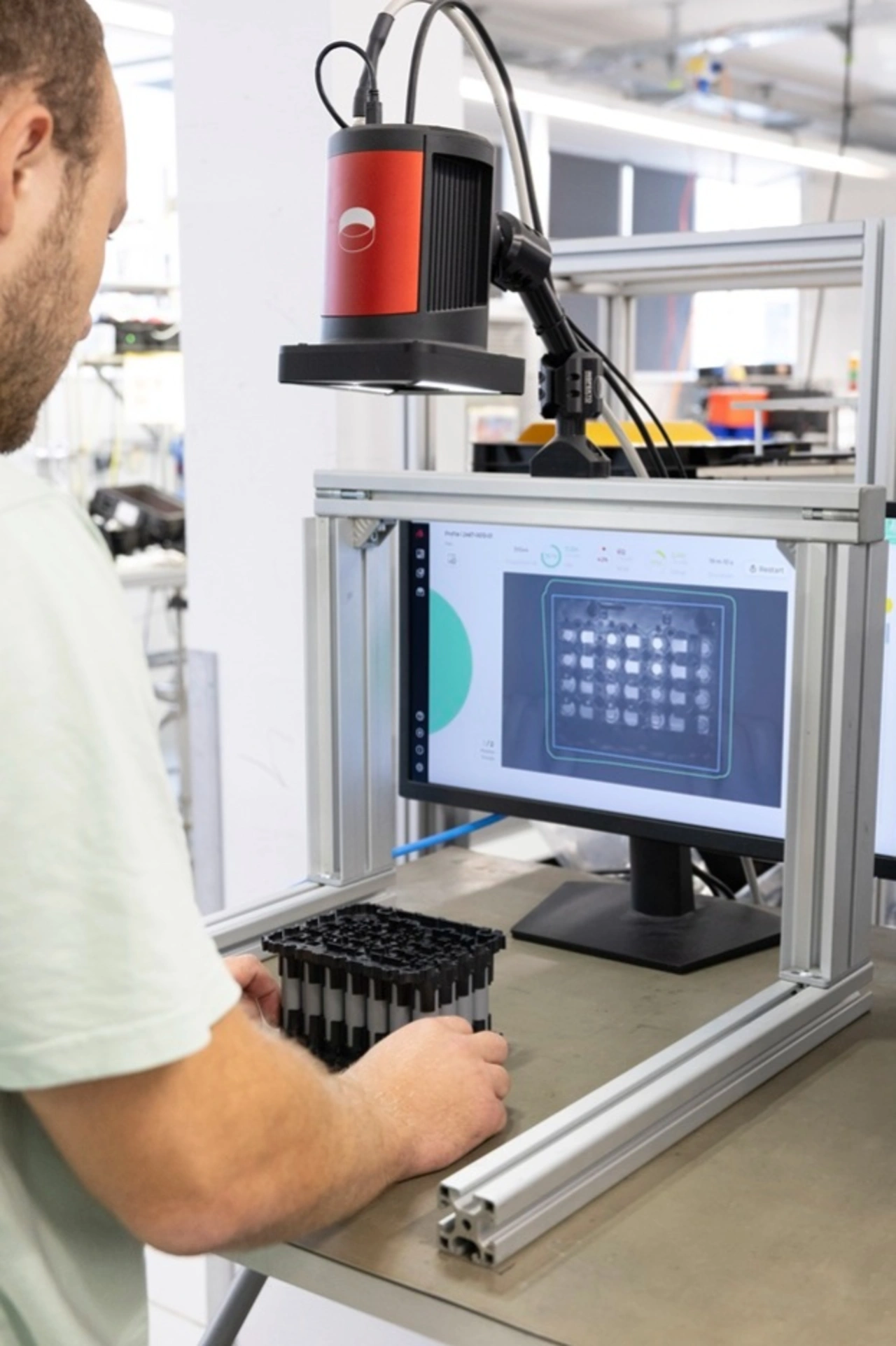 Die ausgezeichnete Inline-KI-Lösung erkennt Zellen, die bei der Bestückung falsch herum eingesetzt wurden, zuverlässig in Echtzeit und markiert diese. Auch fehlende Zellen werden gemeldet. Dies verhindert sicherheitskritische Vorfälle beim anschließenden Schweißen. Risiken wie Kurzschluss, Brandgefahr, Ausschuss, Anlagenstillstand; eventuelle Gefährdung von Mitarbeitenden wird minimiert. Grundlage des neuen KI-gestützten Qualitätssicherungssystems in der Assamstädter Produktionsstätte von Ansmann ist das Automated Visual Inspection System S70 der Siemens-Tochter Inspekto.